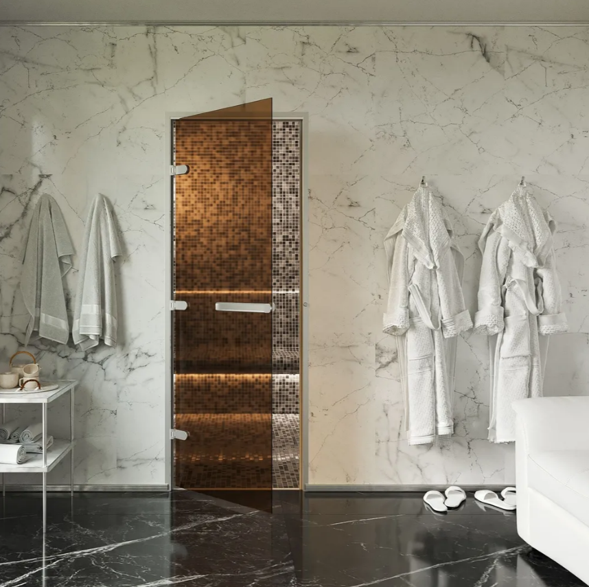 Дверь для хамам и сауны Gratec Estri Silver Premium, бронза прозрачная закаленное стекло 8 мм