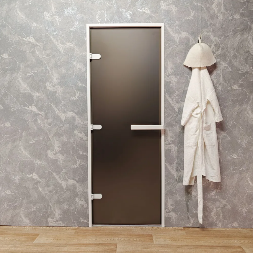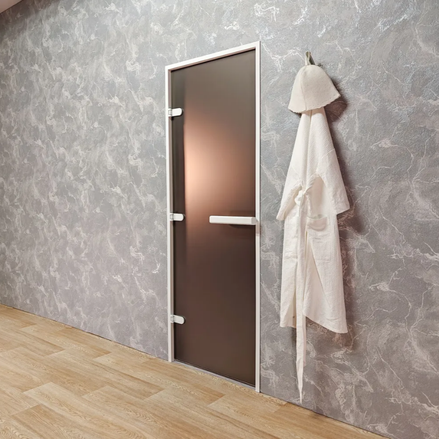 Дверь для хамам и сауны Gratec Estri White Premium, белый короб и фурнитура, бронза Matelux матовое закаленное стекло 8 мм фото 5