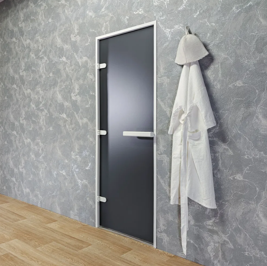 Дверь для хамам и сауны Gratec Estri White Premium, белый короб и фурнитура, серое Matelux матовое закаленное стекло 8 мм фото 6