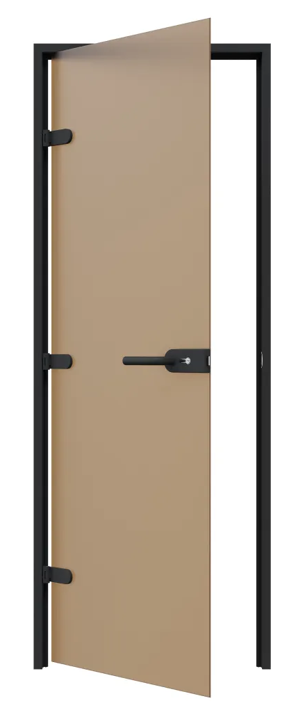 Дверь для хамам и сауны Gratec Diana Black Premium, чёрные короб и фурнитура, бронза Matelux матовое закаленное стекло, магнитный уплотнитель