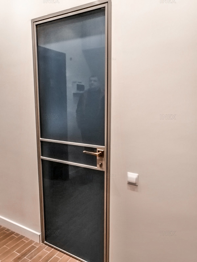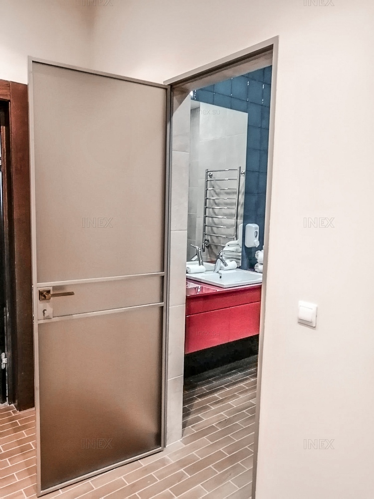 Раздвижная система для стеклянных дверей в обрамлении из алюминиевого профиля