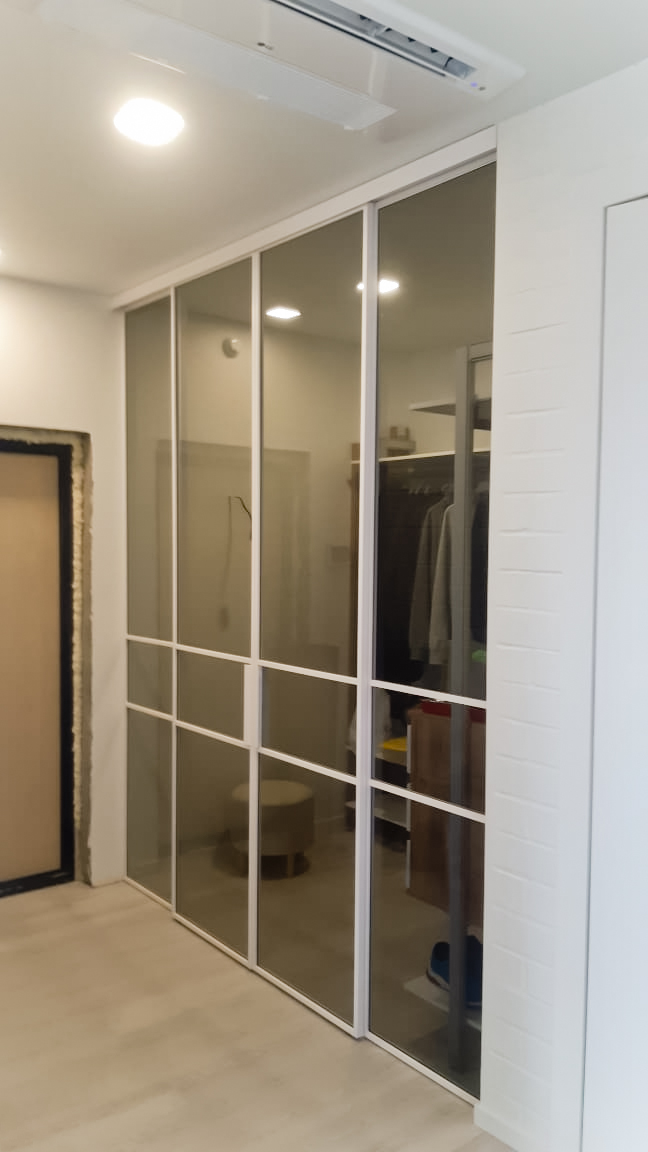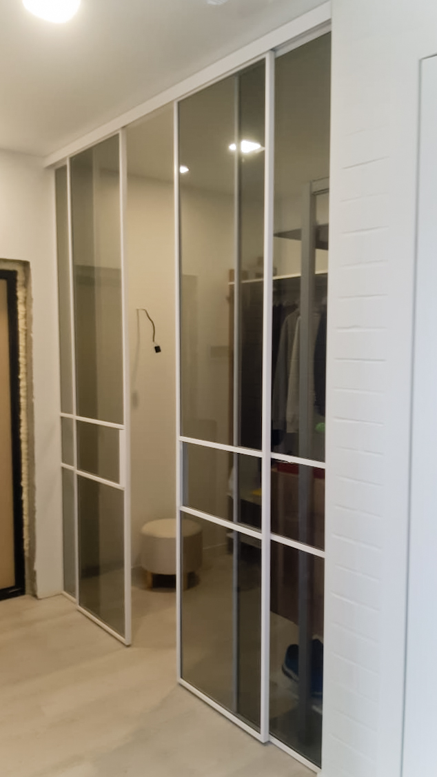 Перегородка с откатными створками в ульратонком профиле лофт