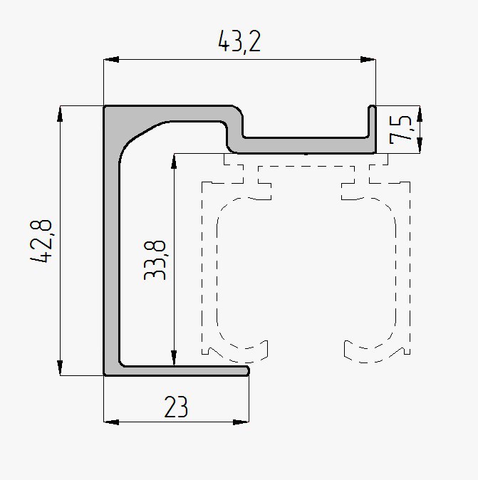 Данный профиль используется для крепления трека к стене, за счет ширины этого профиля формируется отступ трека от стены для компенсации зазора под плинтус.