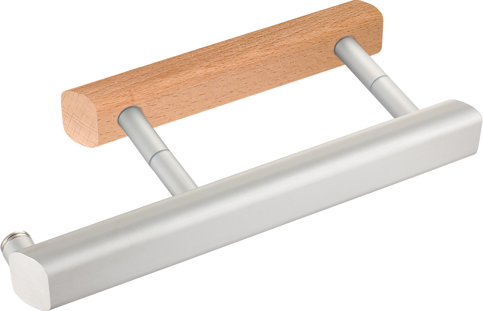 Ручка-скоба Gratec Estri AB из цельнолитого алюминия и массива бука с магнитным фиксатором для стеклянной двери сауны и бани арт. RS-AB-315M-SR