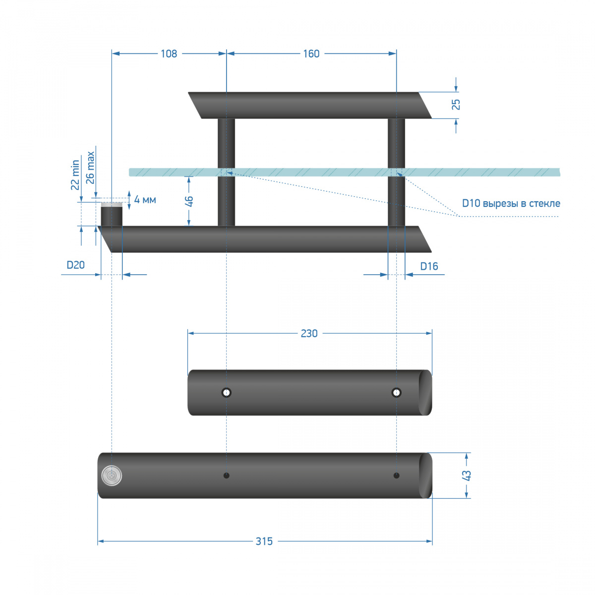 0883-12 Профиль s-102 (база) для стеклянных ограждений 6000мм