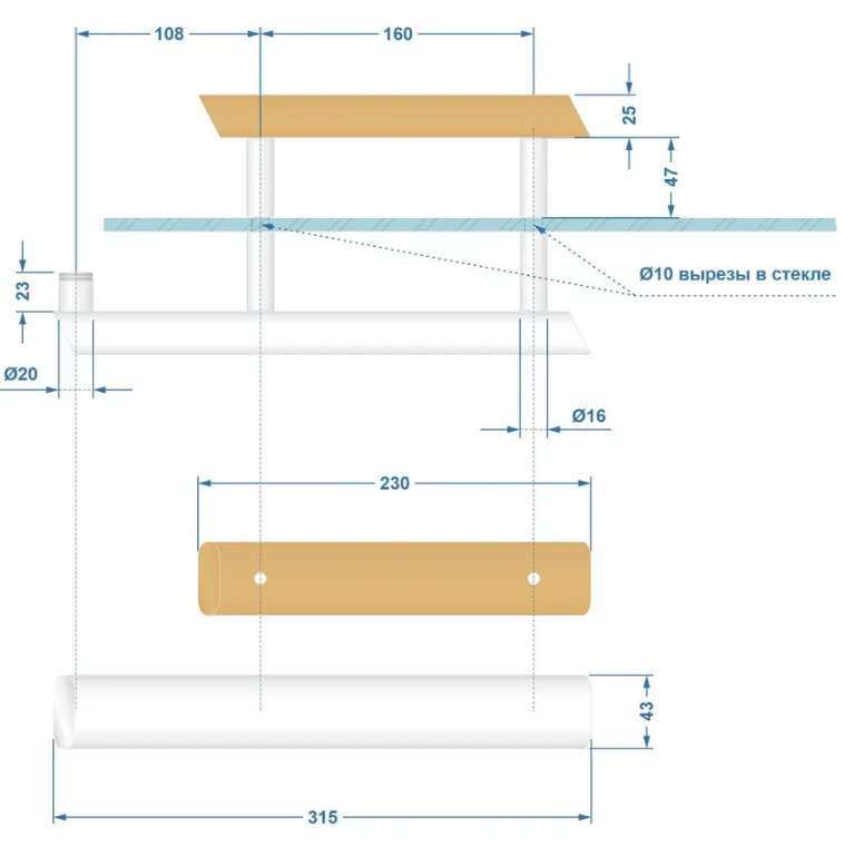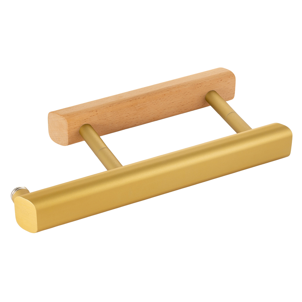 Ручка-скоба Gratec Estri из цельнолитого алюминия, окрашенного в золотой муар и массива бука с магнитным фиксатором для стеклянной двери сауны и бани арт. RS-AB-315M-GD