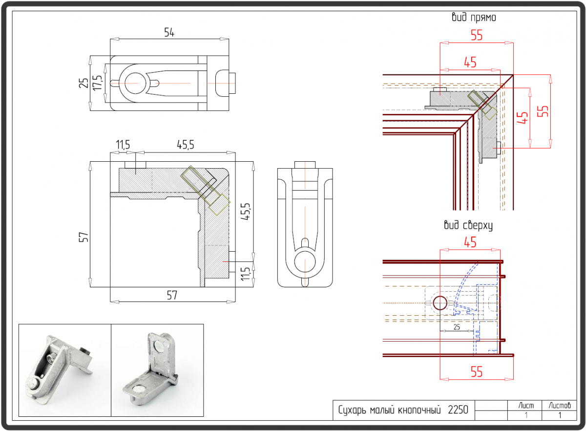 Гнутик нержавеющий короткий 10-60x40 арт. 12-247