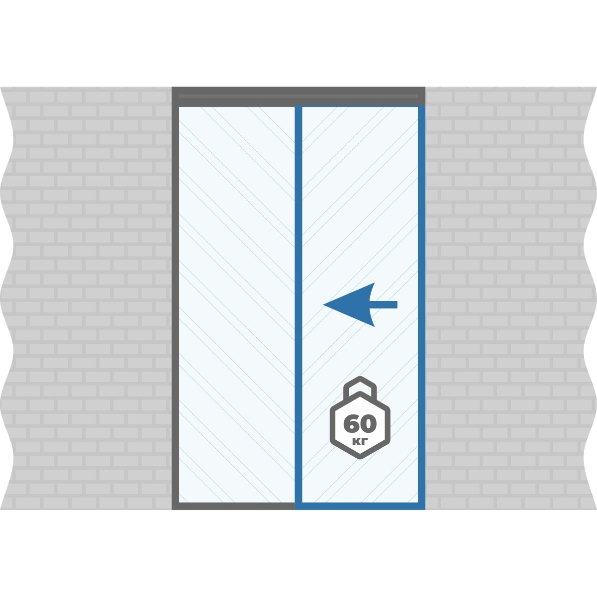 Данный комплект состоит из одной глухой неподвижной створоки и одной откатной створоки. В данный комплект входит двухсторонний доводчикик плавного закрывания - открывания.