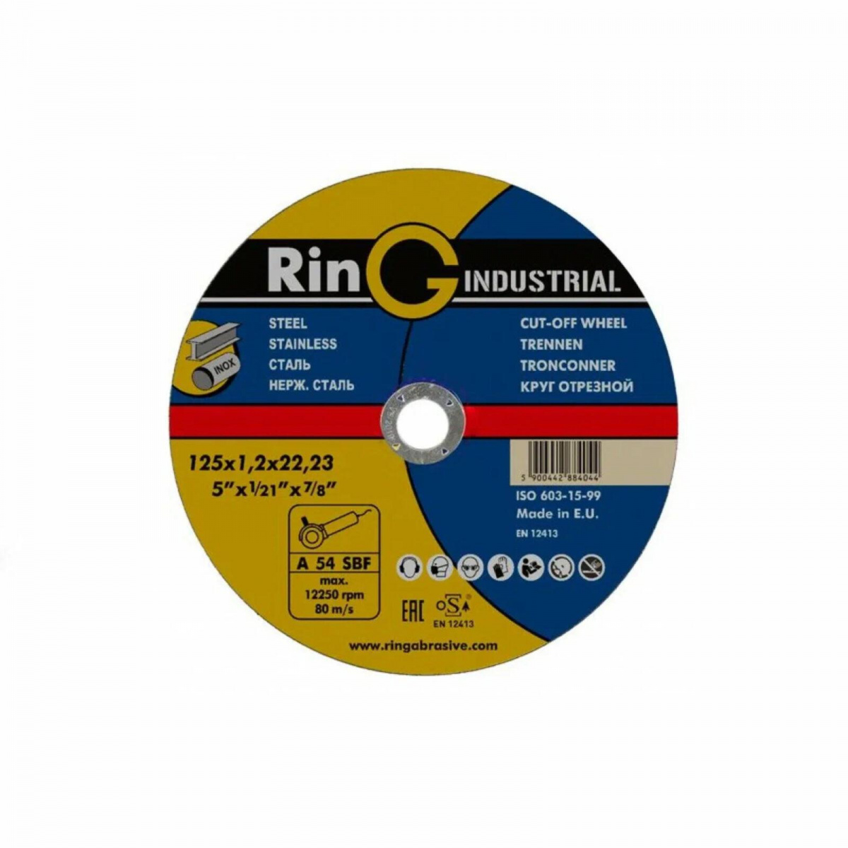 Отрезной круг по металлу и нержавеющей стали 125*1*22мм RinG арт. 25-009