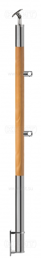 Комбинированная стойка диаметром 38 мм из бука и нержавеющей стали с двумя регеледержателями на 16 мм и креплением в косоур