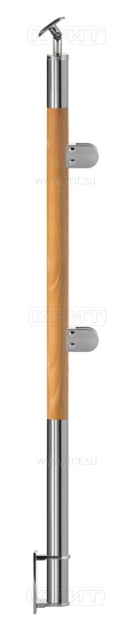 Комбинированная оконечная стойка с креплением в косоур, диаметром 38 мм из бука и нержавеющей стали с двумя стеклодержателями
