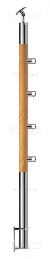 Комбинированная стойка диаметром 38 мм из бука и нержавеющей стали с четырьмя регеледержателями на 16 мм и креплением в косоур