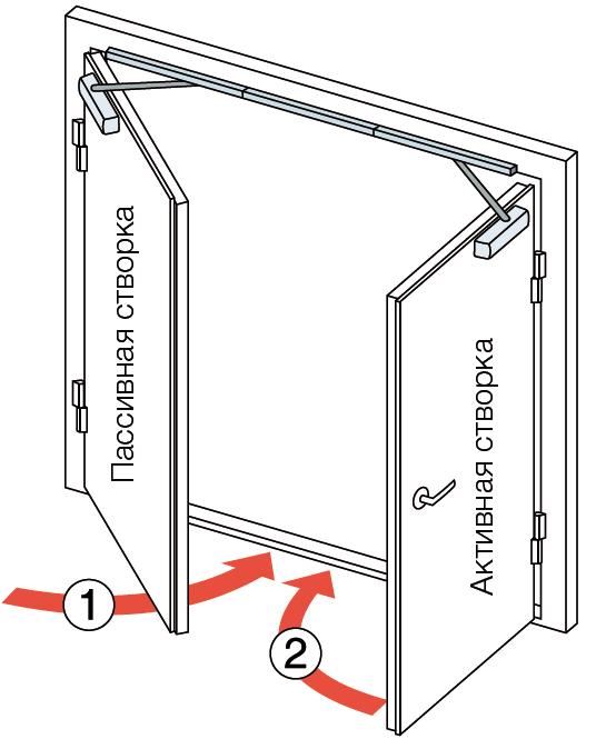 После того как активная створка закрывается, происходит фиксация пассивной створки. При монтаже со стороны закрывания должен использоваться FD120.