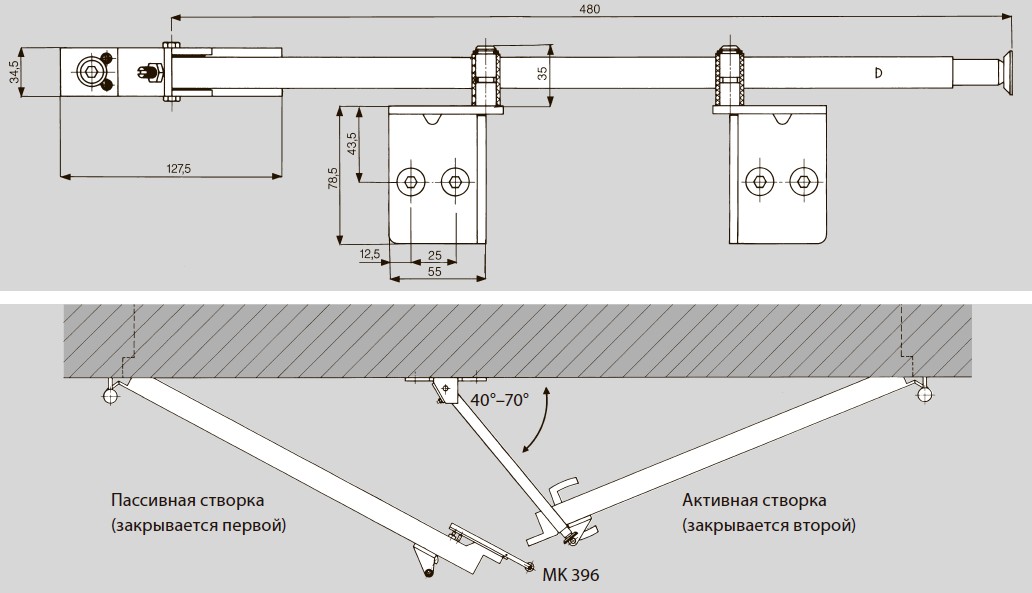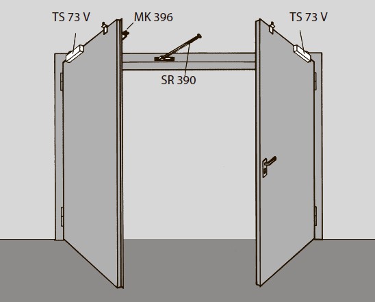 DORMA SR 390 — это общепризнанный, полностью механический дверной координатор для двустворчатых дверей с фальцем. Фиксируется на лицевой стороне дверного каркаса.